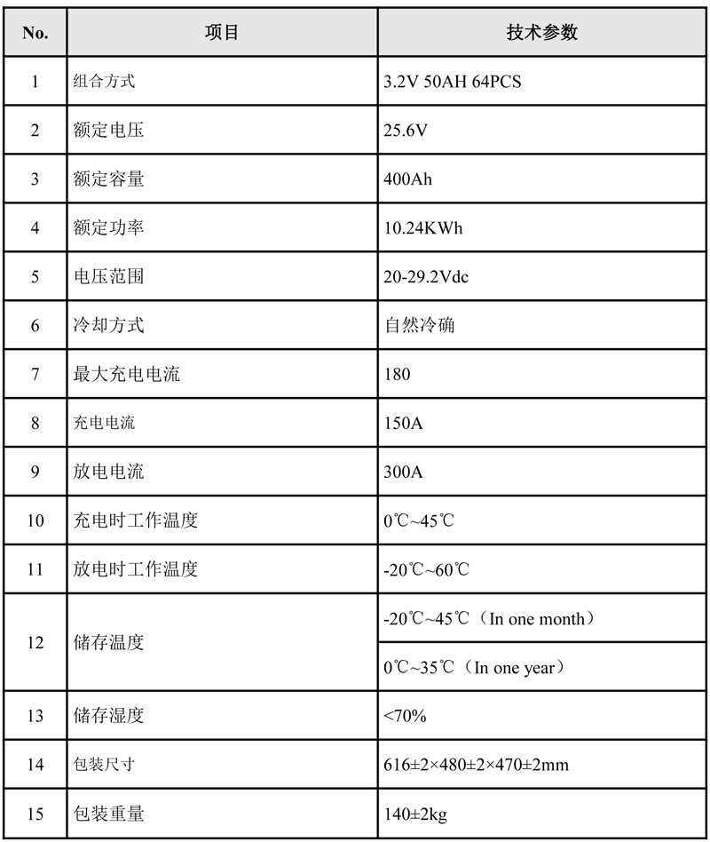 6、輸出電壓直流10.24V,適用于家庭儲能系統、通信站與其它應用場所;